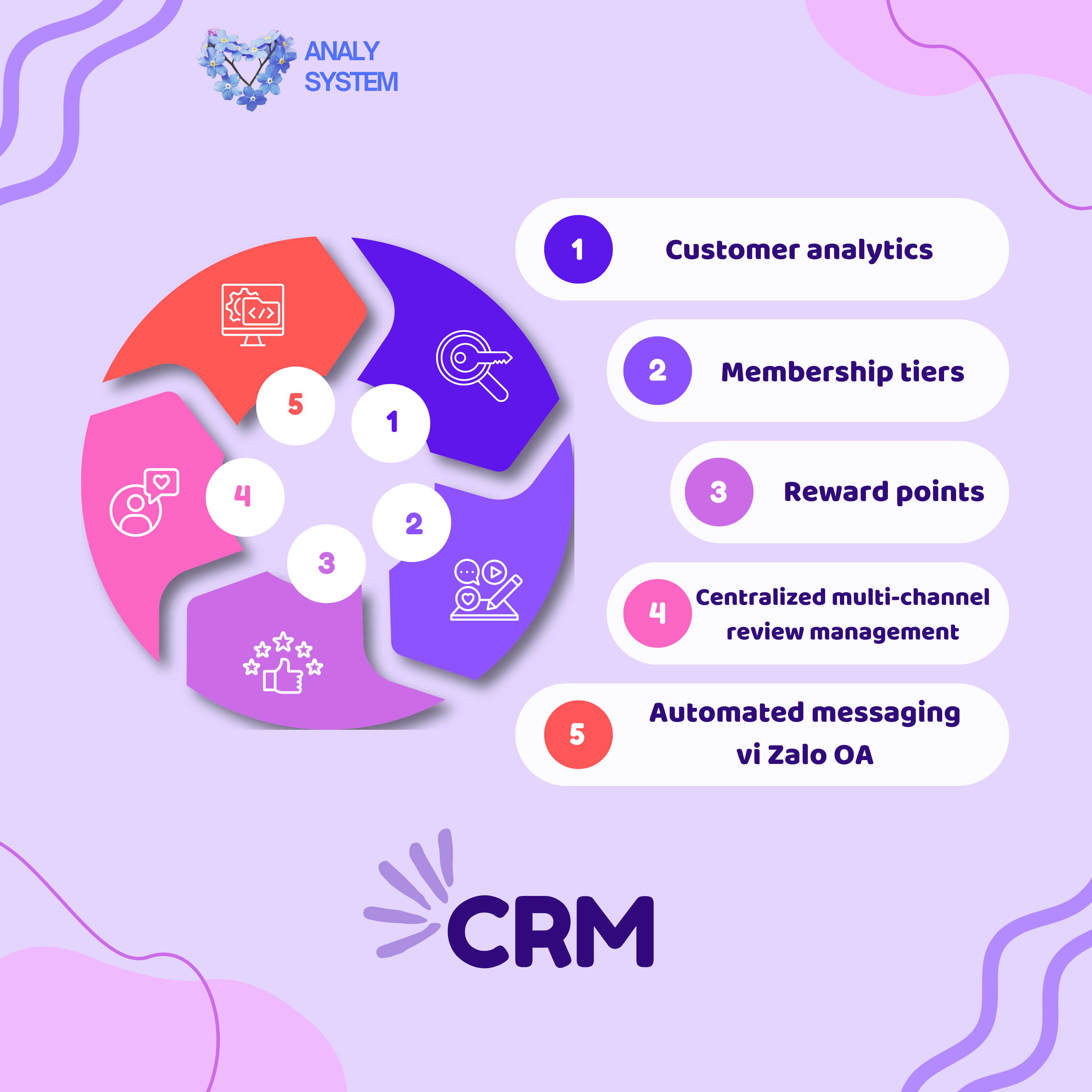 AI-powered CRM system that analyzes all omnichannel customer data, helping stores gain deep insights into purchasing behavior, segment customers by visit frequency and order value, and build effective personalized customer care strategies. 🔸 Manage and analyze customer information in one centralized system 🔸 Track and respond to Food-app reviews, and share insights within the Analy community 🔸 Integrate with Zalo OA to automatically send customer care and retention messages 🔸 Flexibly configure loyalty points and redemption rules across different sales channels 🔸 All features are seamlessly operated within the Analy app, supporting customer base expansion, revenue growth, and long-term sustainable development