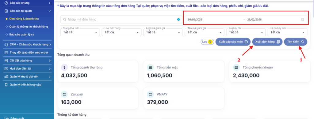 ➡️ Doanh thu ròng: Là số tiền chính xác quán nhận về số tài khoản, chưa bao gồm các đơn hàng hoàn tiền (nếu có).