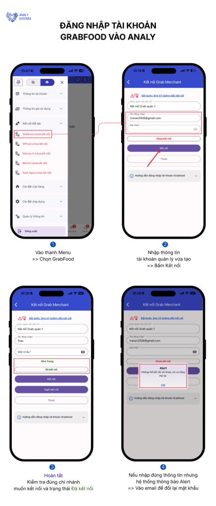 Sau đây là các bước để đăng nhập tài khoản Grabfood vào Analy