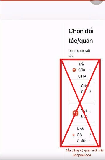Nếu thấy ở màn hình này hiện Danh sách đối tác có nhiều tài khoản quán => thì không tiếp tục sử dụng tài khoản này, mà phải tạo 1 tài khoản Quản lý khác chỉ liên kết với 1 quán cần đăng nhập.
