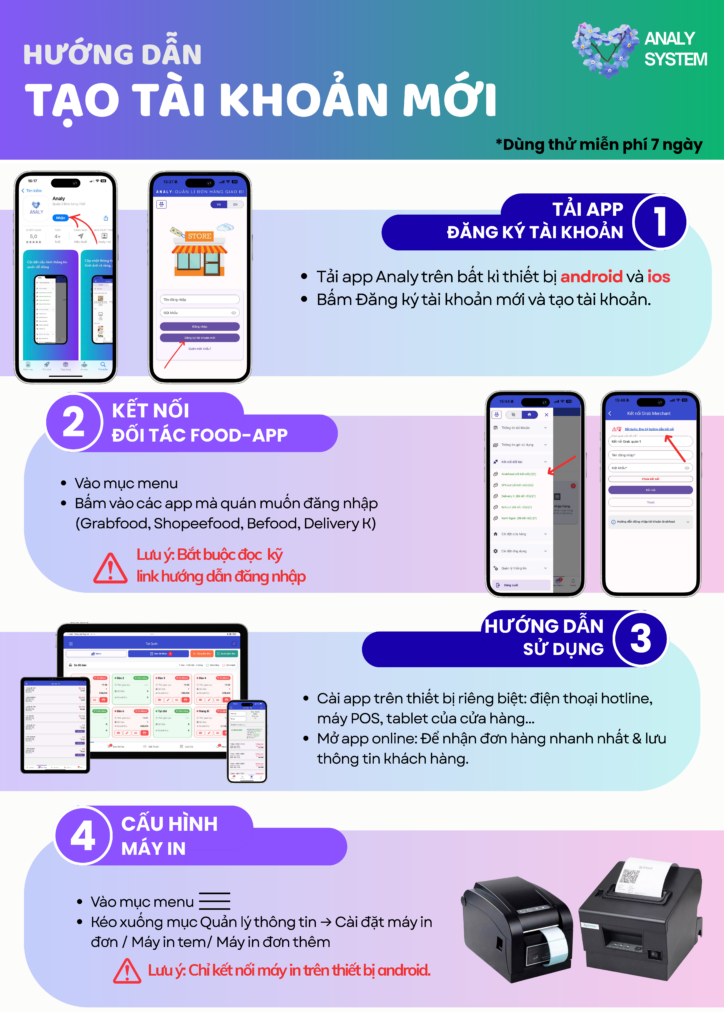 Với phần mềm Analy, quán có thể dễ dàng cài đặt in tem cho các đơn Grabfood, Shoeefood, Befood, Xanh ngon…nhanh chóng, tận dụng ngay các thiết bị mà quán có. Tối ưu chi phí – Vận hành mượt mà hơn.