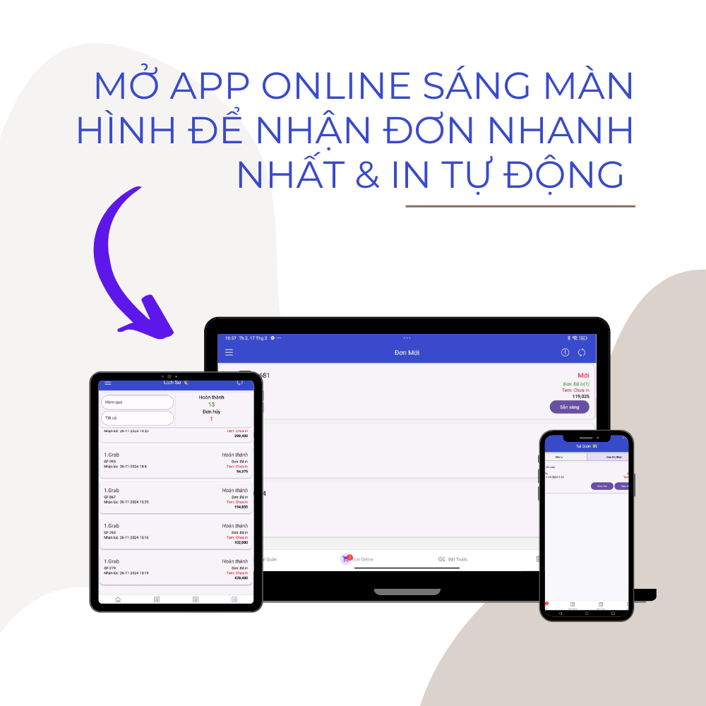 Bước 4: Giữ app online sáng màn hình để nhận đơn và in tem tự động khi có đơn mới.