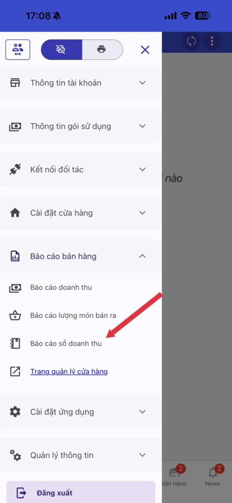 - Tải Báo cáo sổ doanh thu trên app: