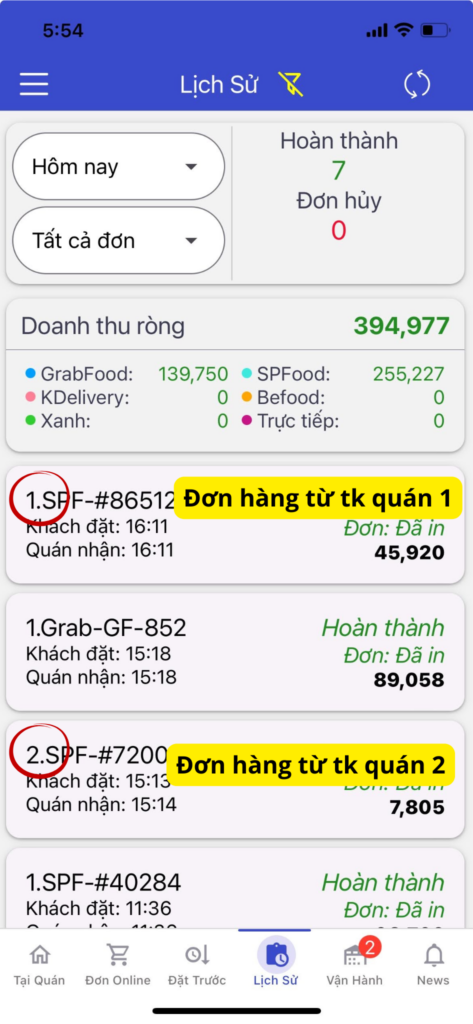 4. Mã số đơn hàng lúc này sẽ được cập nhật theo số thứ tự của cổng đăng nhập quán đó như sau, giúp quán dễ dàng theo dõi đơn hàng đến từ quán nào.