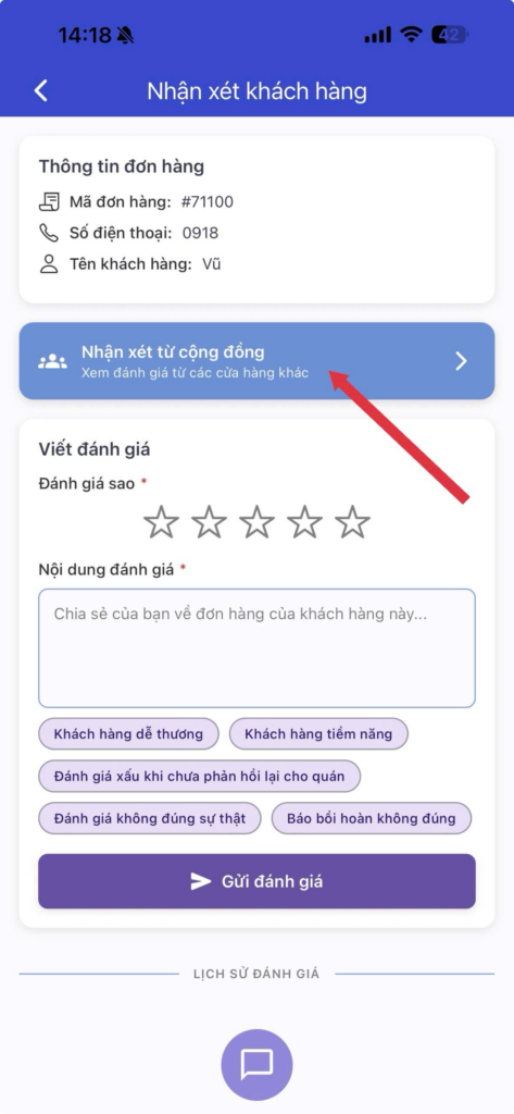 - Sau khi nhận xét khách hàng, nếu khách hàng có đặt đơn lần nữa thì quán có thể thấy được số sao của khách hàng mà các quán đã đánh giá trước đó để quán cân nhắc khi làm đơn: